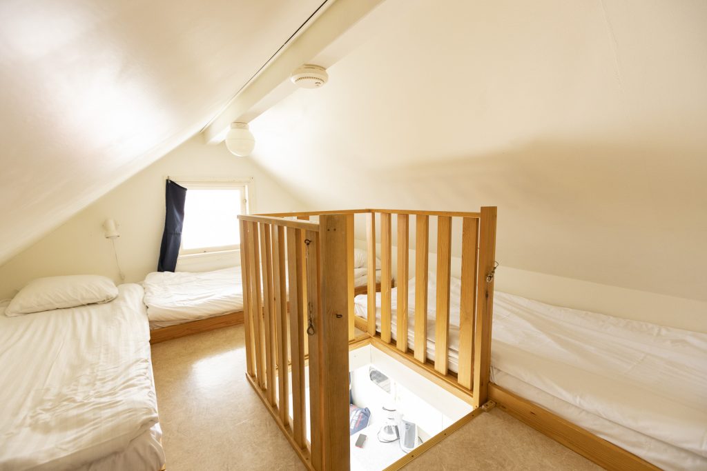Stugorna 211-216 har inget helt sovloft, utan två loftsängar (en som är 120 cm bred och en som är 80 cm bred). Stugorna är inte lämpliga dig som reser med små barn.